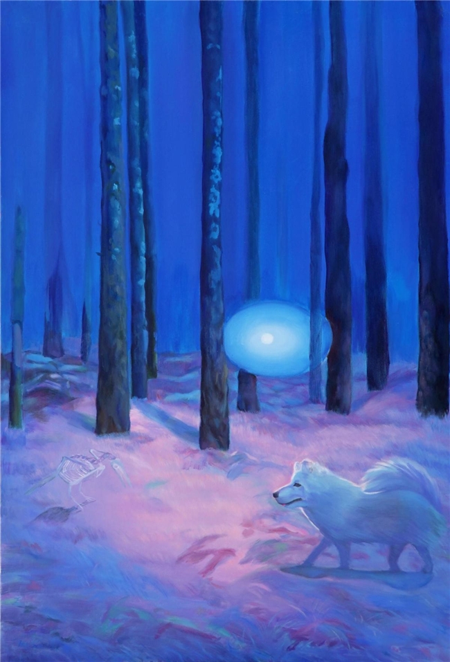 身体是其中一个重要的异化中心,动物、骨骼、窗帘、发饰这些 形象拼凑出一种介于具象与抽象之间、似是而非的身体碎片,它们并非传统意义上的“象征物”,更像是一个潜意识装置, 一种回环、封闭、重复的机制。杨希南在画面里创造的并非叙事,而是一种观看的迷宫,她像是一个结构编舞者,把凝视引向一个不断消解的节点。